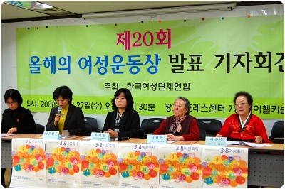 한국여성단체연합은 2월 27일(수) 프레스센터 7층 레이첼카슨룸에서 제20회 올해의 여성운동상 수상자를 발표하는 기자회견을 진행했다.