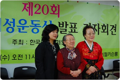 수요시위의 주역인 길원옥, 이용수 할머니도 기자회견에 함께 참가해 주셨다. 길원옥 한머니는 “감사하다”고 짧은 소감을 밝혔고 이용수 할머니는 “여러 여성들과 상을 나눴으면 좋겠다. 감사하고”고 수상 소감을 밝혔다.