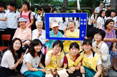 퍼포먼스를 시작하자 분위기가 놀라울 만큼 밝아졌다. 인터뷰 대상자를 사냥(?)하면서 돌아다니는 것이 활동적이어서 즐겁기도 하고, 어린 학생들이 있어서 그런지 호응이 좋아 다행이었다. 할머니들께서 가상이나마 기쁜 소식을 눈앞에 그려보셨으면 하는 마음이었다. 마이크를 잡아드신 할머니는 ‘농담이라도 이렇게 되었으면 얼마나 좋겠느냐’며 서글픈 웃음으로 대답하셨다. 하기야 20을 넘도록 소리쳐 외쳤던 말이다. 그 외침을 듣고도 모른 척 20년을 등을 돌려 무시했으니 얼마나 원통하고 답답하셨을까.