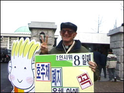 지난 월요일 이후로 모습이 보이지 않던 호주제폐지 반대쪽에서 다시 1인 시위에 나오셨습니다. 신부님이 저희를 기다리는 동안 심심해서 말을 걸어봤더니 “호주제폐지 반대하는 것”이라고, “신부님도 반대하시죠?”하더랍니다. 그래서 신부님이 “나는 찬성하러 나왔다”고 하시면서 “교회 안에서도 남녀가 다르게 취급받는 것이 잘못인데, 가족 안에서 남자, 여자가 다르게 취급받는 것은 안된다”고 답하셨답니다.
