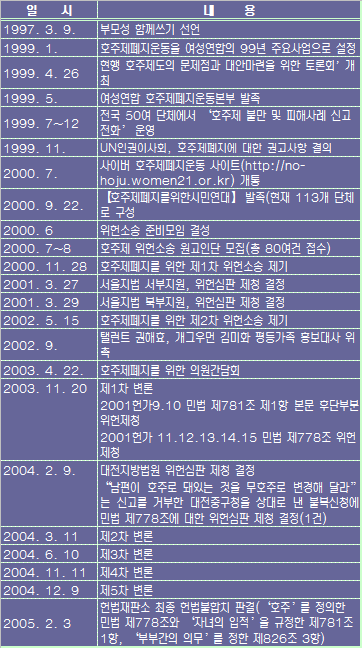 | ▲ 호주제 위헌 소송 활동일지 ⓒ 한국여성단체연합 | ||