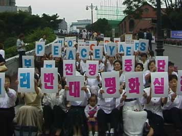 | "우리 여성들은 테러공격과 보복전쟁을 반대한다." |
