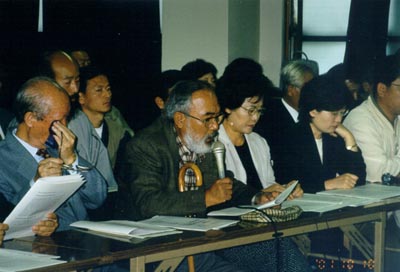 | ▲ 전쟁에 반대하는 765개 사회단체의 시국선언장에서 문정현 신부가 선언문을 읽는 동안 모두 눈시울을 적셨다. ⓒ 한국여성단체연합 | ||