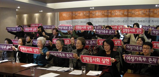 기자회견은 여성학자 오한숙희 님의 사회로 곽배희 가정법류상담소 소장, 박영숙 한국여성재단이사장, 윤후정 이화학당 이사장, 은방희 한국여성단체협의회 명예회장, 이연숙 전 국회의원, 정재훈 서울여대 사회복지학과 교수, 윤홍식 전북대학교 사회복지학과 교수 등 여성계 원로와 사회복지 학계 등 40여명의 인사들이 모여 진행됐다.