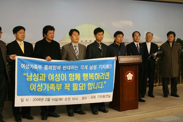학계, 종교계, 법조계, 시민사회, 의료계, 방송계, 문화예술계 남성들은 현재 국회에서 논의 중인 여성가족부 통폐합(안)에 강력히 반대합니다.