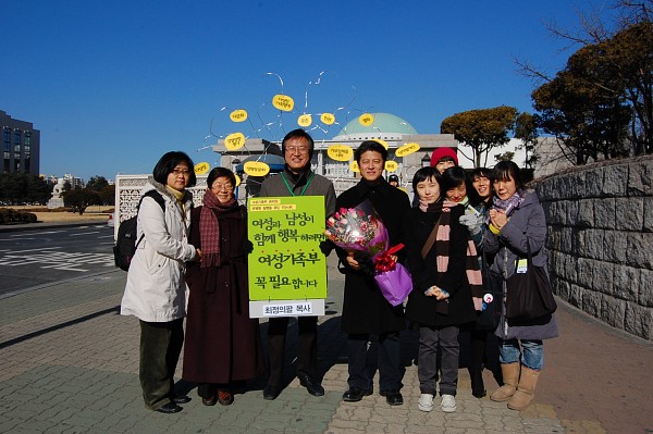 저출산․고령화 현당에 따른 가족의 위기와 변화, 이로 인한 돌봄 노동의 공백, 여성의 비정규직화로 인한 빈곤의 여성화가 갈수록 심해지고 있는 가운데 많은 여성들이 사회취약 계층으로 전락하고 있으며, 심각한 인권침해에 시달리고 있는 것이 한국사회 여성의 현실임을 저희도 알고 있습니다. 신자유주의 확대와 여성의 빈곤화로 인해 여성의 노동권과 생존권이 심각하게 위협받고 있는 것도 현실입니다. 여성의 빈곤이 가족의 빈곤으로 이어지고 이는 남성과 여성이 모두 불행해지는 사태로 이어지는 악순환에 직면해 있습니다. 이러한 여성들의 현실은 저희 남성들에게도 실감 있게 다가와, 이제 우리사회 공통의 문제가 되었고, 남성과 여성이 함께 힘과 지혜를 모아 해결해나가지 않으면 지속가능한 발전은 불가능하게 될 것입니다.