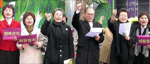 또한 이날 행사에는 남윤인순, 조현옥, 손봉숙, 김상희 등 맑은정치여성네트워크 운영위원과 총선여성연대소속의 각 단체소속 회원들, 지역공천을 신청한 16명의 여성후보들과 일반인들 200여명이 참여, 추운 겨울바람속에서도 깨끗한 정치의 바람을 불어넣고자 하는 열기로 가득했다.