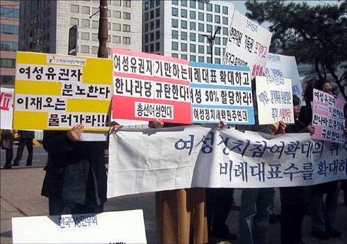 한편 총선여성연대는 20일 오후 한나라당 당사 앞에서 집회를 열고 이재오 위원장의 즉각 사퇴를 촉구하기도 했다.