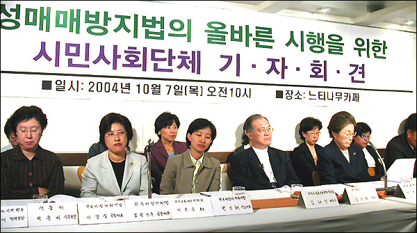 10월 7일 오전 10시 종로 느티나무 카페에서는 20여개의 시민사회단체 및 여성단체가 주관하는 성매매방지법의 올바른 시행을 촉구하는 기자회견이 개최되었다. 이는 지난 9월23일부터 성매매방지법이 시행된 이후 경찰단속을 비웃기라도 하듯이 성매매방지법 또한 머지않아 사문화될 것이며, 처벌과 단속 또한 금방 시들해 질 것이라는 등의 법 집행의지를 불신하는 여론이 대두하고 있는 상황에 대해 시민사회단체들이 모두 함께 정부의 엄정한 법집행을 요구하기 위해 마련된 자리였다. 이날 기자회견에는 성매매방지법의 올바른 시행을 위한 행동에 동참할 80여개 단체들 중 20여명의 단체 대표들이 참석하여 앞으로 성매매 근절을 위한 노력에 뜻을 같이하였다.