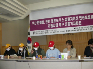 | ▲ 10월 27일(수) 오전 10시 한국걸스카우트연맹 10층 강당에서 개최된 ‘부산 완월동, 인천 옐로하우스 집결지여성 인권보호를 위한 지원사업 촉구 공동기자회견’ ⓒ 한국여성단체연합 | |