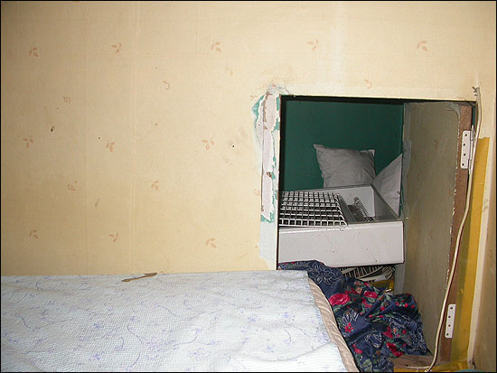 | ▲ 지하에 위치한 가장 구석진 방에는 단속에 대비해 임시로 숨기위해 설치한 것으로 보이는 작은 쪽방이 있다. ⓒ 한국여성단체연합 | ||