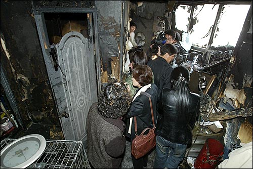 | ▲ 지난달 27일 발생한 서울 성북구 하월곡동 미아리 집창촌 화재 현장. ⓒ 2005 오마이뉴스 권우성 | ||
