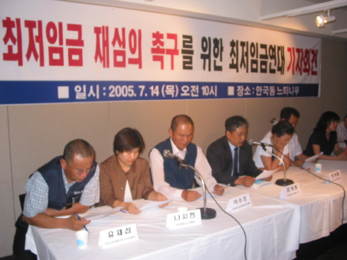| ▲ 최저임금 재심의 촉구를 위한 최저임금연대 기자회견 ⓒ 2005 이철우 | ||