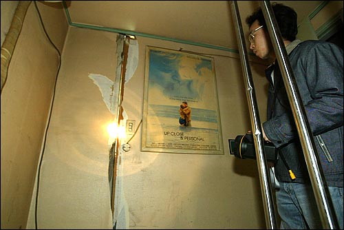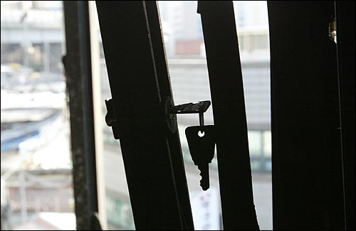 | ▲ 닫힌 창문 밖에서 보면 창문이지만 안에서 확인해 보면 합판으로 막혀 있다. ⓒ 오마이뉴스 권우성 | ||