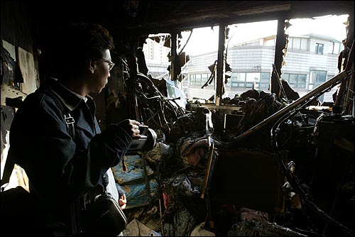 문을 지나자 매케한 그을음 냄새가 코를 찔렀다. 3층에 올라서자 화재로 녹아내린 갖가지 생필품들이 당시의 처참함을 말해주고 있다. 3개의 작은 방에는 화장품, 옷가지 등이 형체를 알아볼 수 없을 정도로 일그러져 나뒹굴었다.