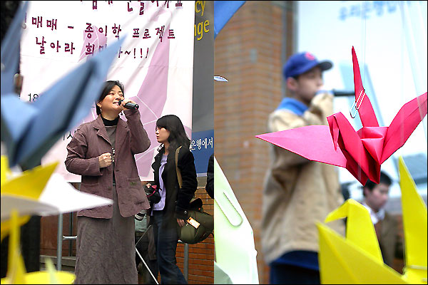 시민연대는 이날 거리를 지나는 시민들에게도 보라색의 종이학 배지와 성매매 방지법 홍보 리플렛을 각각 1천여개씩 배포했다.