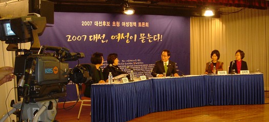 2007 대선후보 초청 여성정책토론회 준비위원회와 여성신문사는 11월 28일(수)와 30일(금) 양일에 걸쳐 민주노동당 권영길 후보, 창조한국당 문국현 후보, 한나라당 이명박 후보, 대통합민주신당 정동영 후보와 함께 여성정책 토론회를 개최한다.