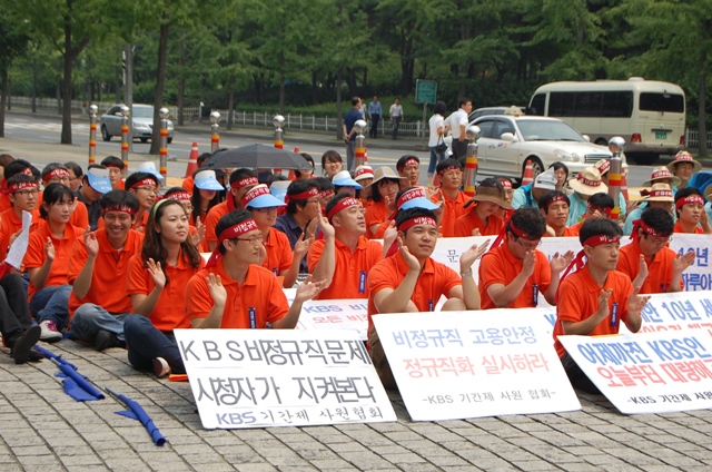 대학생인 내가, 기본적인 상식으로 생각해도 이번 kbs의 기간제 노동자 해고사태는 수긍할 수 없는 점이 많다. 거리로 내몰린 해고 노동자들이 6월달부터 기자회견 및 궐기 대회들을 했을 때, 사측은 뚜렷한 대답도 없었고 오히려 노동부에서까지도 이 사실을 묵인해왔었다.