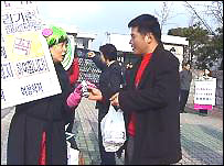 | ▲ 호주제폐지 1인 시위를 격려하는 시민 ⓒ 한국여성단체연합 | ||