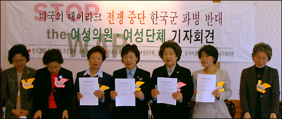 3월 24일 오전 10시 국회 귀빈식당에서는 미국의 대이라크 전쟁 중단 및 한국군 파병반대 여성 국회의원·여성단체 기자 회견이 열렸다.
