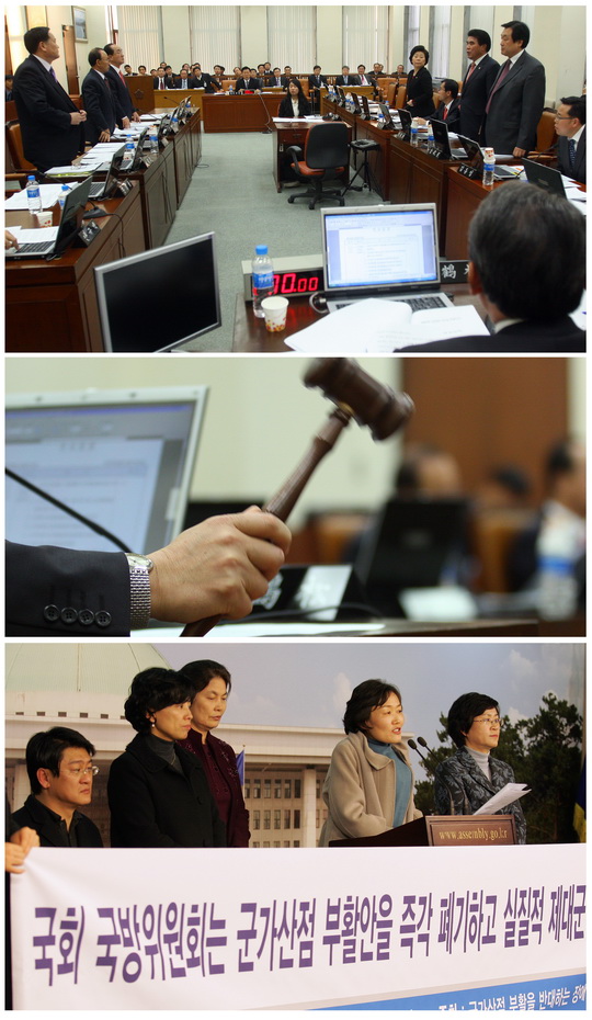 재적 의원 12명 중 김학송 국방위원장과 군 출신의 김성회·김옥이 한나라당 의원, 서종표 민주당 의원 등 7명이 찬성표를 던졌다. 반면 유승민, 김영우, 김동성 한나라당 의원과 문희상, 안규백 민주당 의원 등 5명은 반대했다.