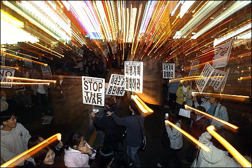 이들은 또 한국정부의 파병안 폐기와 이라크 전쟁지지 철회를 요구했다.