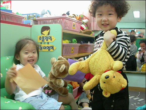 | ▲ 성북구의 국공립 보육시설인 솔셈어린이집 아이들이 인형을 가지고 놀고 있다. ⓒ 2005 박상규 | ||