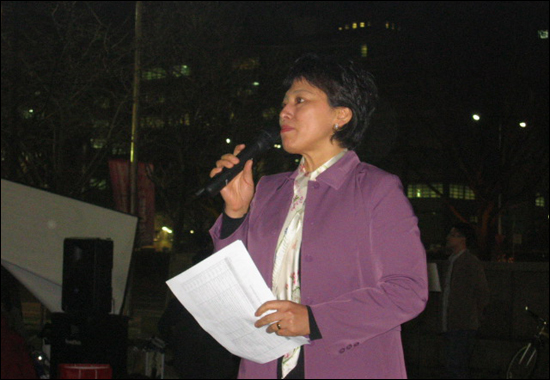 | ▲ 촛불집회 개회사를 하고 있는 남윤인순 여성연합 상임대표 ⓒ 한국여성단체연합 | |