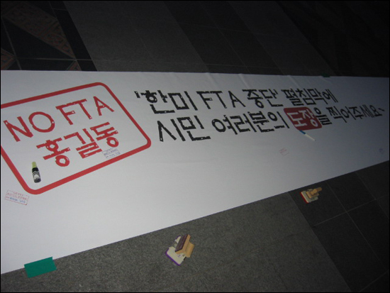 | ▲ NO FTA 도장찍기 퍼포먼스 ⓒ 한국여성단체연합 | |