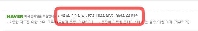 아래와 같이 하단에 세계여성의날에 관한 안내가 링크가 되어 나간답니다.