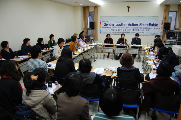 11월 8일 열린 라운드테이블은 “성장중심 개발과 금융위기가 여성에게 미치는 영향”을 주제로 G20 대응 민중행동이 열리는 예수회센터에서 진행되었다. 라운드테이블에서는 글로벌 금융위기와 성장중심 개발 담론이 여성에게 미치는 영향에 대한 주제발표와 ‘서울여성행동 성명서’ 합의에 필요한 6개 영역별 토론이 진행되었다.