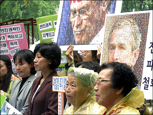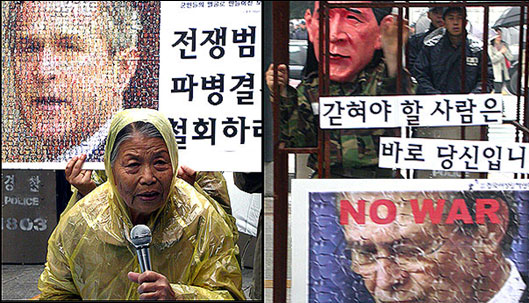 특히 일본에 의해 전쟁 중 반인권적 범죄를 몸소 겪음으로써 아직도 고통에 시달리고 있는 한국정신대대책협의회의 황금주, 김윤심 두 할머니가 기자회견에 참석하여 이라크 주둔 미군과 영국군이 이라크 포로에게 가한 성적 범죄 및 잔혹행위가 얼마나 끔찍한 것인지에 대하여 분노를 표시하였다.