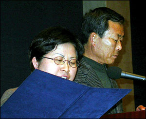 | ▲ '7천만 겨레에게 보내는 호소문'을 낭독해 "올해를 자주통일의 새로운 전환기로 만들어가자"고 호소했다. ⓒ 한국여성단체연합 | ||