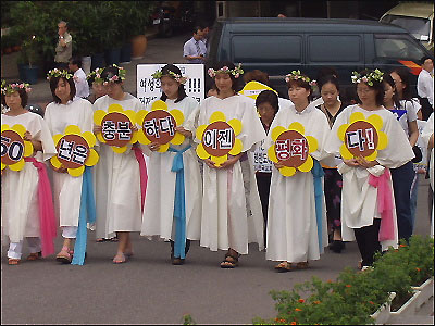 평화를만드는여성회, 한국여성민우회, 한국여성의전화연합, 한국여성단체연합 등을 비롯한 10여개 여성단체 회원들은 7월24일 오전11시, 명동성당 들머리에서 <정전을 평화로> 여성평화퍼레이드를 개최하였다.