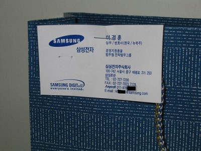 | 보낸 사람의 명함이 붙어있는 쇼핑백 |