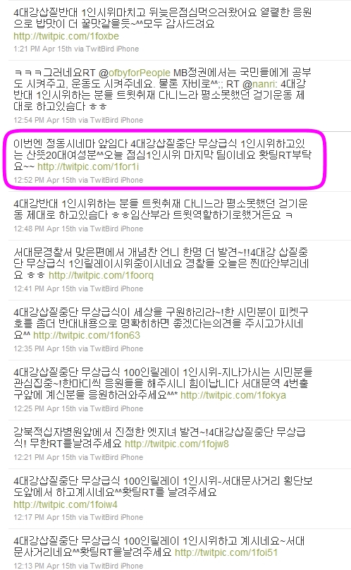 ▲ 이번 1인시위는 트위터로 실시간 생중계되었고 많은 트위터유저들이 RT를 통해 함께 했다. ⓒ 한국여성단체연합 |