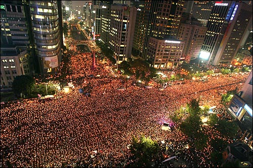 오늘의 100만 촛불대행진으로 투쟁이 마무리되는 것이 결코 아닙니다. 오히려 국민주권을 온전히 실현하기 위한 새로운 투쟁이 시작되고 있습니다. 쇠고기협상 무효화와 전면재협상을 쟁취하고, 또 국민주권을 실현하기 위한 우리 국민의 투쟁은 쉼없이 계속될 것입니다. 우선 급한 소나기만 피하면 그냥 넘어갈 수 있을 것이라는 얕은 생각은 곧 어리석은 오판으로 판명될 것입니다. 100만명으로도 말을 안 들으면 300만명 500만명의 국민이 나서고, 또 그래도 국민에게 항복하지 않으면 1,000만명 2,000만명이 참여하는 거대한 투쟁을 성사시켜, 기필코 승리를 쟁취할 것입니다.