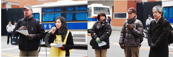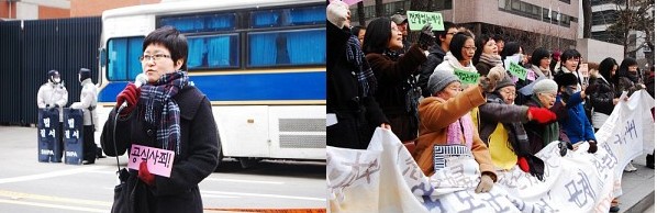 수요시위에 참석한 한국여성단체연합 김금옥 사무처장은 “추운날씨에도 불구하고 이렇게 참여해 주셔서 감사하다. 요즈음 일본의 도요타 자동차 회사 사장은 자동차 결함문제와 관련하여 전 세계 사람들을 대상으로 사과를 하는데, 일본 정부는 왜 묵묵부답인지 알 수 없다. 우리가 일본 정부를 향해 좀 더 큰 목소리를 내야 할 것이다” 라면서 오늘 수요시위의 시작을 알렸다.