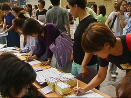 | ▲ 성매매방지법 제정을 위한 거리 서명전에서 서명을 하고 있는 시민들. ⓒ 한국여성단체연합 | |