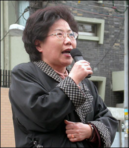 | ▲ 수요시위에 참여하여 인사말을 하고 있는 이오경숙 여성연합 대표 ⓒ 한국여성단체연합 | |