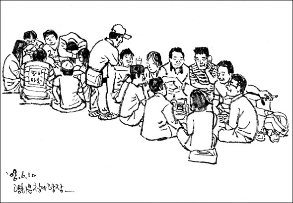 * 토론현장에 참여한 방청인들의 경우는 비치된 투쟁방안-실천방안 제안용지를 작성하여 제출하면, 그중 몇분을 선정하여 토론 과정에서 현장토론 방식으로 토론에 참여한다. 나머지 제안된 의견은 취합하여 각 차수의 토론 결과에 포함시킨다. 또 토론시간 중에 선착순 발언신청을 받아 자유토론 시간을 갖도록 하되, 토론과정에서 나오지 않은 논점에 관해 자유발언할 수 있도록 한다.