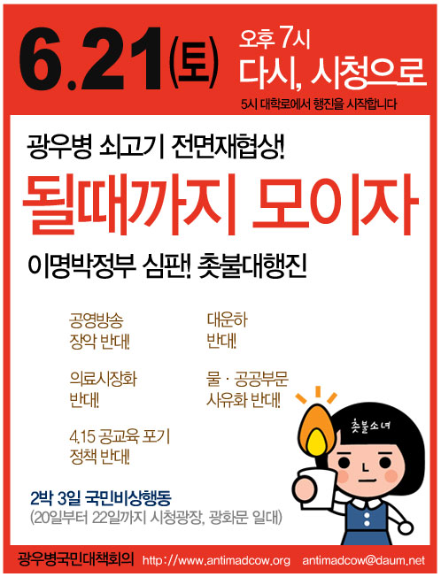 | » | 6.21(토) 이명박정부 심판 촛불대행진 | 2008.06.19 |