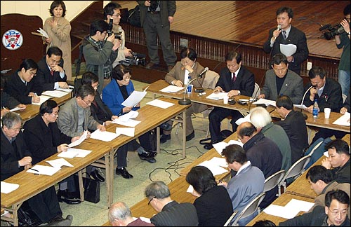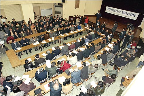 강당 입구에서는 연락망을 만들기 위해 회의 참석자의 이름과 연락처를 적고 촛불집회 진행을 위한 성금도 모금했다. 단체 대표들은 모두 10만원씩의 성금을 쾌척했다.